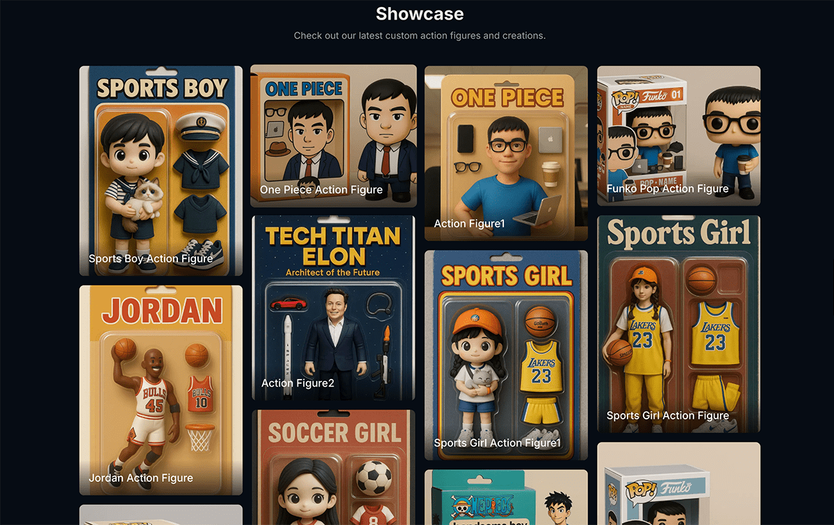 Action Figure AI 拥有用户友好的界面,设计简洁流畅,让交互更加轻松。布局优化了人偶创建流程,支持简单的照片上传和风格选择。独特的定制选项确保每位用户都能获得个性化的体验,轻松制作高质量的动作人偶,让每个人都能轻松上手!