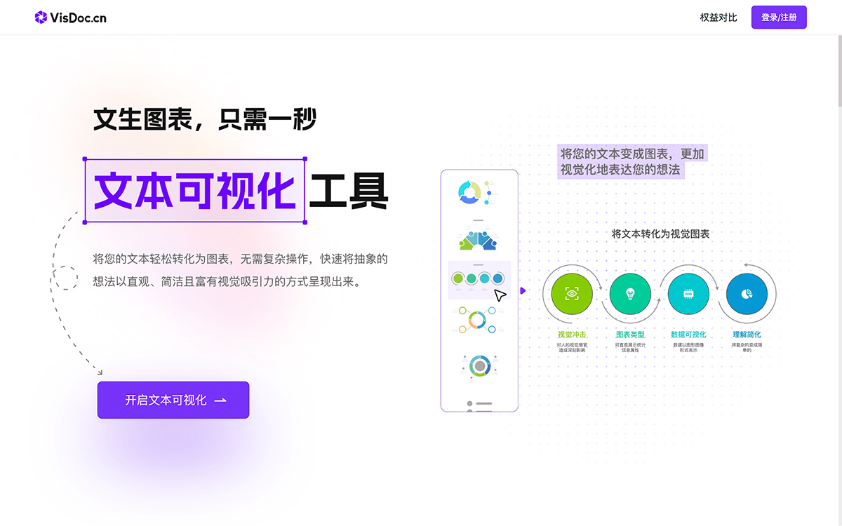 VisDoc能够根据用户提供的文本描述自动生成图表,将抽象概念以直观、简洁且富有视觉吸引力的方式呈现出来。