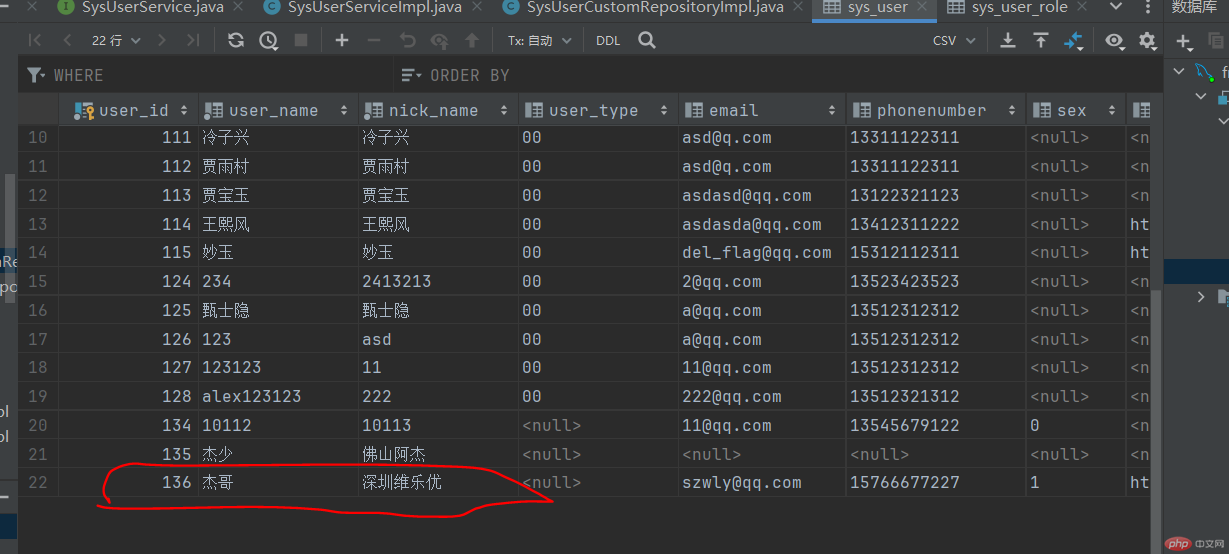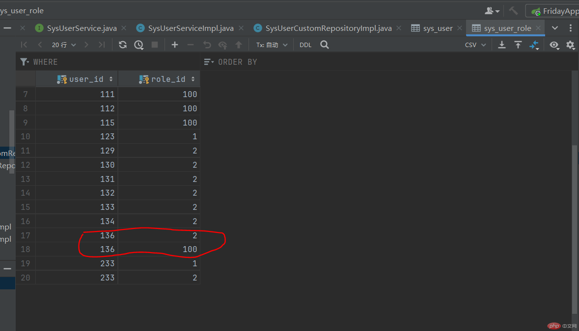 /*** @Transactional 注解相信大家并不陌生,平时开发中很常用的一个注解,它能保证方法内多个数据库操作要么同时成功、要么同时失败。* */@Override@Transactionalpublic boolean insertUser(SysUserVo user) {SysUser sysUser = new SysUser();BeanUtils.copyProperties(user,sysUser);sysUser.setDelFlag("0");// 新增用户信息sysUserRepository.save(sysUser);user.setUserId(sysUser.getUserId());// 新增用户与角色管理insertUserRole(user);return null != sysUser.getUserId();}/*** 新增用户角色信息** @param user 用户信息* */public int insertUserRole(SysUserVo user){Long[] roles = user.getRoleIds();if(StringUtils.isNull(roles) || roles.length == 0){return 0;}Long[] userIds = new Long[roles.length];Arrays.fill(userIds,user.getUserId());return sysUserRepository.batchInsertUserRole(userIds,roles);}