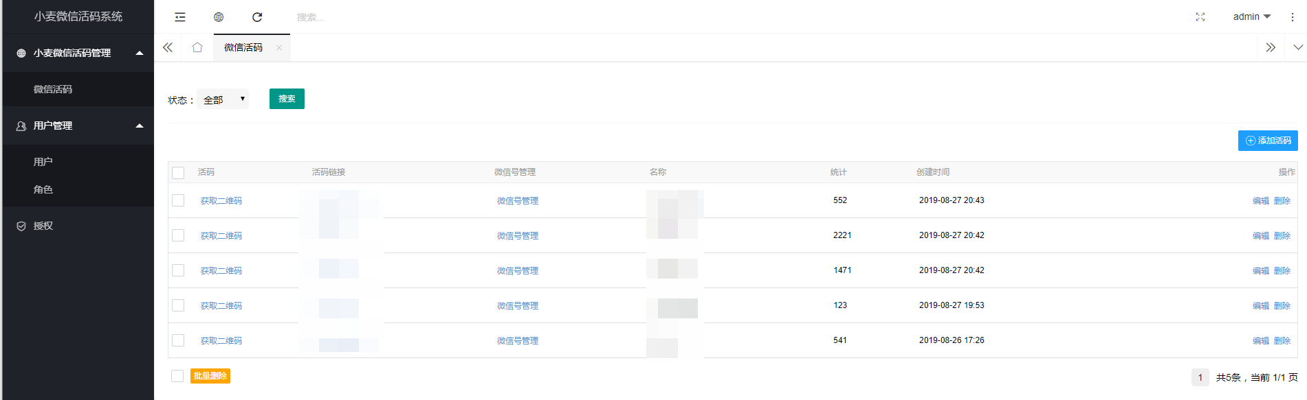 这里大家可以看到 一个活码内可以创建很多个活码出来,