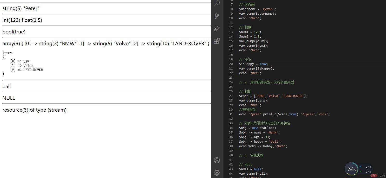 var_dump():能够打印变量的完整信息,即:变量的类型,变量的长度,变量的数值