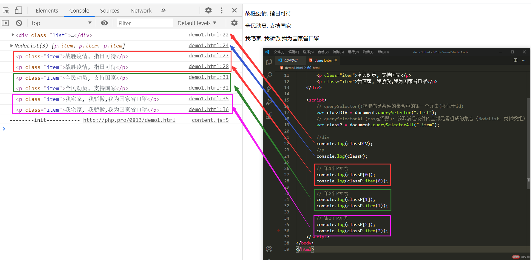 document.querySelector():通过CSS选择器获取,只返回满足条件的第一个
