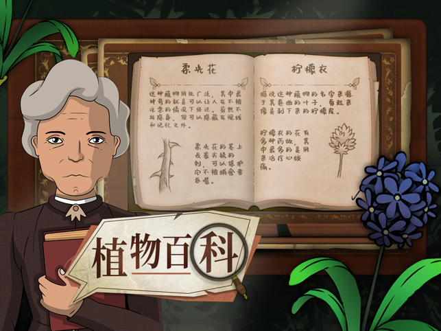 您需要依靠植物百科和其它线索来确定植物,并通过探索和解谜来发现和完善您的植物图鉴。游戏中的植物各具特色,例如丑角蓝、主教阳伞、光肺草等,它们都有独特的学名和部分特性,等待着您去探索和发现。