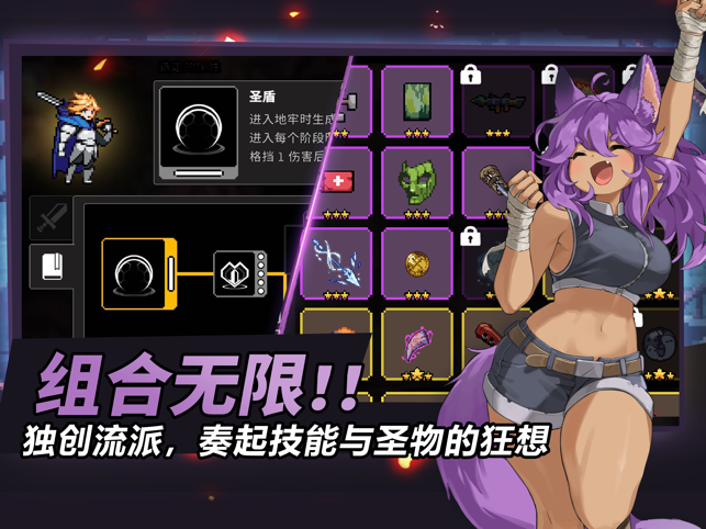 你可以自定义初始技能搭配,并在挺近地牢的过程中不断升级他们,产生强大的组合!