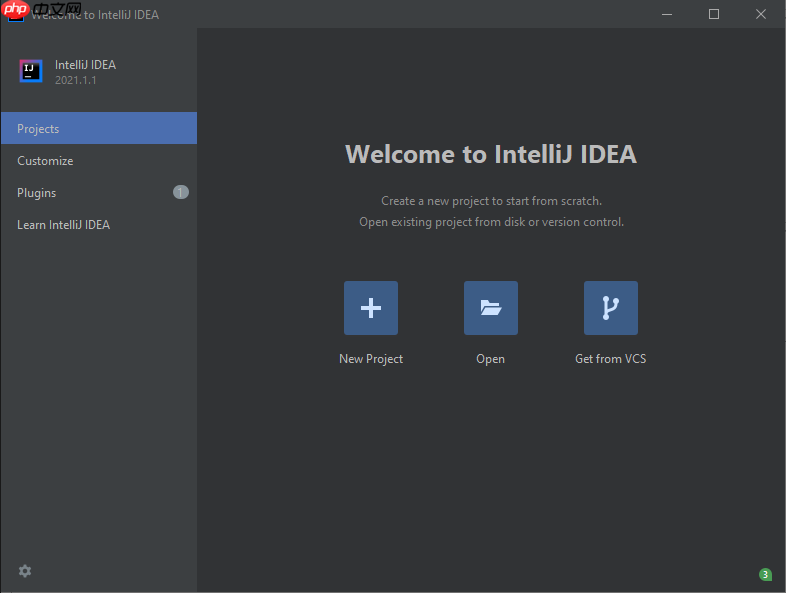 一旦 IntelliJ 下载并安装完成后,点击新建项目按钮开始使用 IntelliJ: