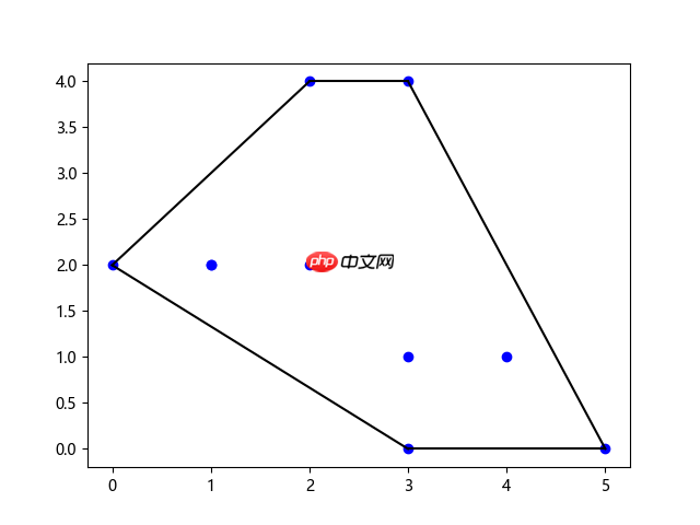 import numpy as np from scipy.spatial import ConvexHull import matplotlib.pyplot as plt points = np.array([ [2, 4], [3, 4], [3, 0], [2, 2], [4, 1], [1, 2], [5, 0], [3, 1], [1, 2], [0, 2] ]) hull = ConvexHull(points) hull_points = hull.simplices plt.scatter(points[:,0], points[:,1]) for simplex in hull_points: plt.plot(points[simplex,0], points[simplex,1], 'k-') plt.show()