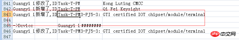 $str .= "{$name},{$action},{$pro_name},{$old},{$new},{$time}\n"; //用引文逗号分开