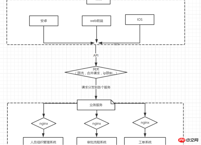 我觉得题主想要的是会员账号平台吧,你图的业务服务是基础平台,在应用层先调用账号平台接口做登录判断,然后再调用基础平台给的接口做一些权限逻辑处理什么的。