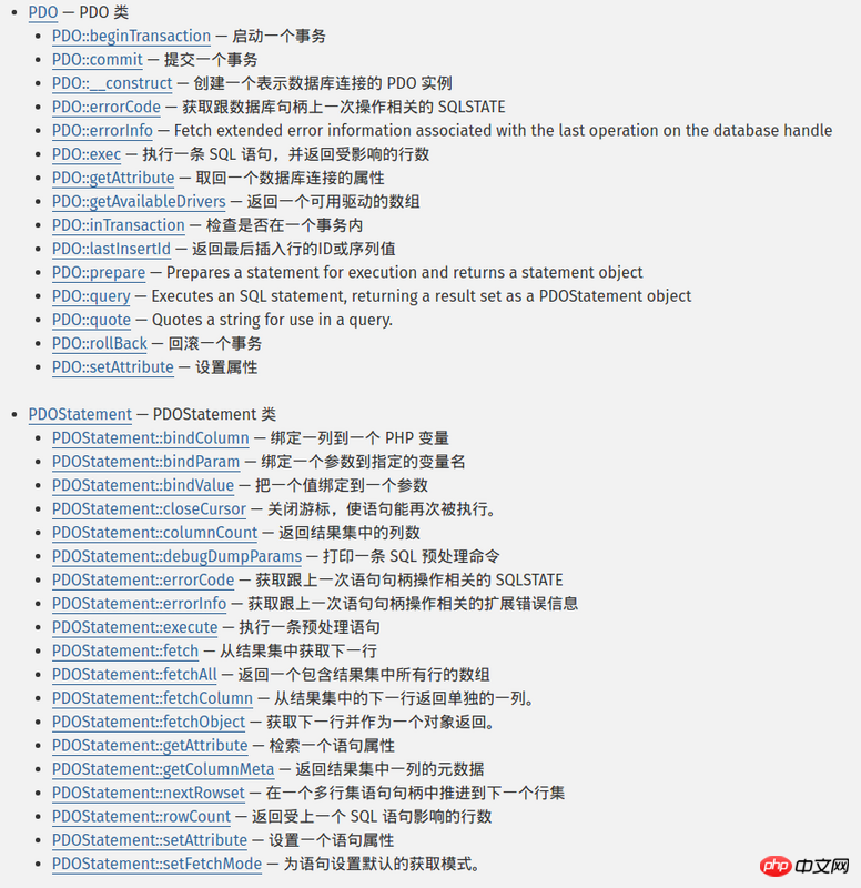 图片是PDO和PDOStatement类所声明的方法,可以看出,这两个类提供的方法虽然绝大部分不同,但是明显核心方法有重叠或重复,比如: