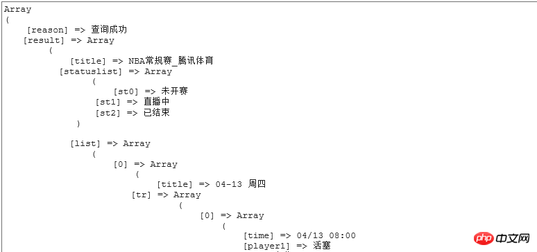 <?php foreach($result['result']['list'] as $item) { foreach($item as $value) { foreach($value['tr'] as $row){ //这里就可以拿到time echo $row['time'] } } }