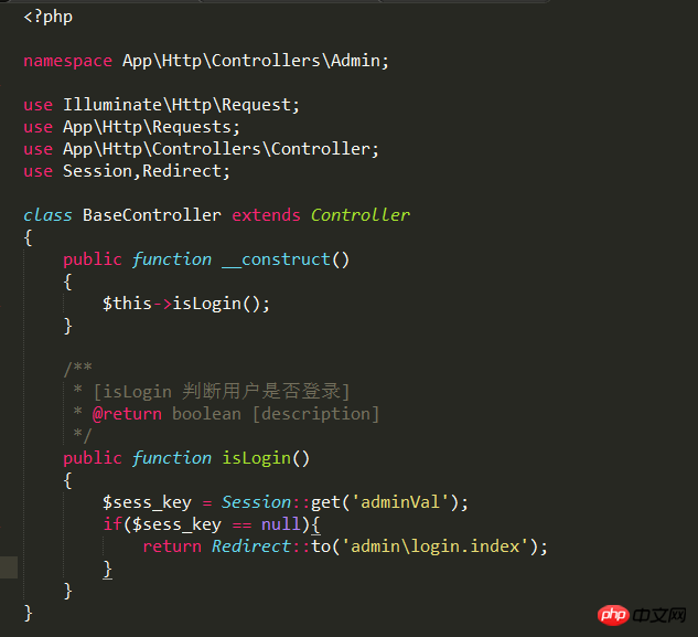 public function __construct(){ $this->checkLogin(); } /** * check login */ protected function checkLogin(){ //子类需要判断登录,则使用auth中间件 if($this->boolNeedLogin){ $this->middleware('auth'); } }