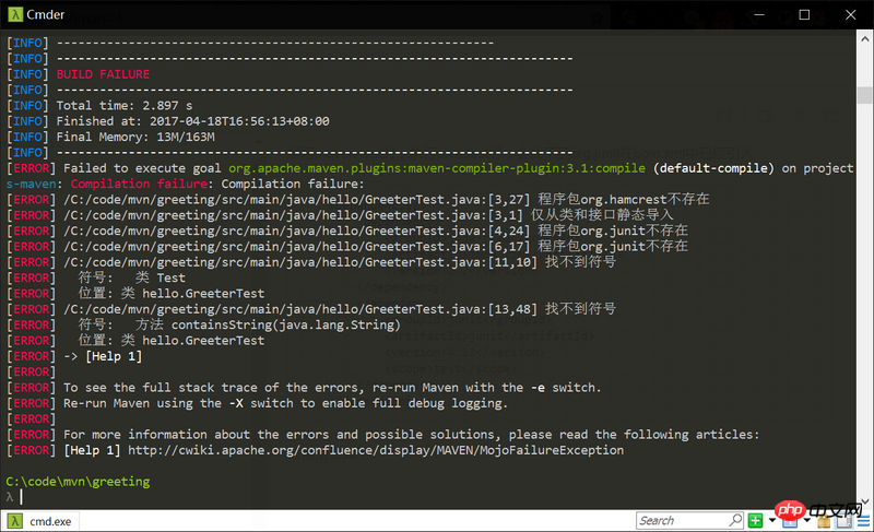 执行mvn compile 或者mvn package也会报错