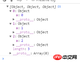你想要的[{a:0},{a:1},{a:2}]只是我们使用字面量形式创建数据和对象时的写法而已,这不代表他的展现形式。