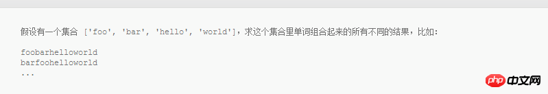 function permute(input) { var permArr = [], usedChars = []; function main(input){ var i, ch; for (i = 0; i < input.length; i++) { ch = input.splice(i, 1)[0]; usedChars.push(ch); if (input.length == 0) { permArr.push(usedChars.slice()); } main(input); input.splice(i, 0, ch); usedChars.pop(); } return permArr; } return main(input).join('\n'); }; console.log(permute(['foo','bar','hello','world']));