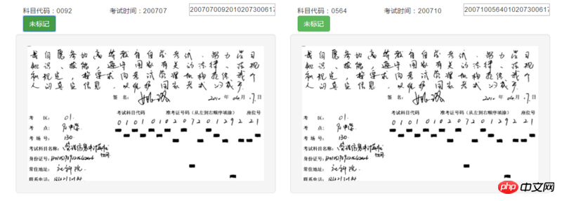 要实现,通过点击标记按钮,将当前考生的信息回传给后台的方法,进行处理。JS怎么获取到当前这个笔迹卡的详细信息呢?这些图片都是动态迭代出来的,没有固定ID和name,JQuery不知如何获取唯一的图片相关信息。