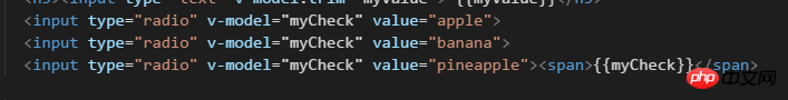 new Vue({ el: "#app", data: { myCheck: '', //用来存放每一次点击的value arr: [] }, watch: { myCheck: function () { this.arr.push(this.myCheck) } } })