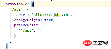 proxyTable: { '/api': { target: 'http://v.juhe.cn', changeOrigin: true, pathRewrite: { '^/api': '' } }