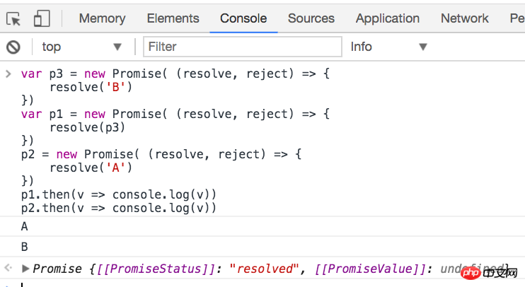 node 与 浏览器运行不一致。 正常的理解 p1 内部 resolve 了一个 promise 不是同步的的 所以明显要p2晚一点。