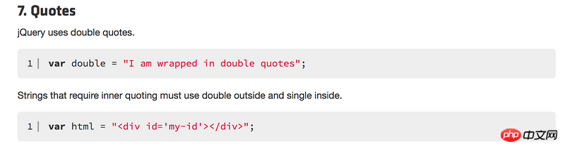 风格指导,只能说两个团队的习惯不同而已。这个问题最早来源于,什么时候用单引号,和双引号:http://stackoverflow.com/questions/242813/when-to-use-double-or-single-quotes-in-javascript 过来,只要是交替使用就可以,喜欢什么用什么。。。