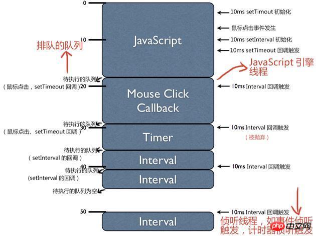 但是setTimeout函数不是这样执行的,它只是创建了一个定时任务,然后直接退出了,javascript的引擎线程会将这个任务放到自己的定时任务中,当定时结束后才调用子函数。