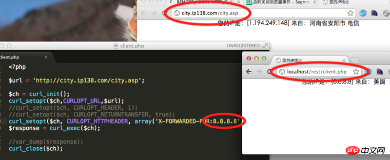 如上图,是我测试的一段代码访问一个IP查询服务的服务,可以看出,可以任何伪造ip地址!