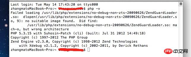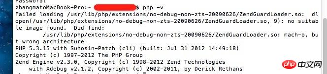 然后,总是出现错误: Failed loading /usr/lib/php/extensions/no-debug-non-zts-20090626/ZendGuardLoader.so: dlopen(/usr/lib/php/extensions/no-debug-non-zts-20090626/ZendGuardLoader.so, 9): no suitable image found.