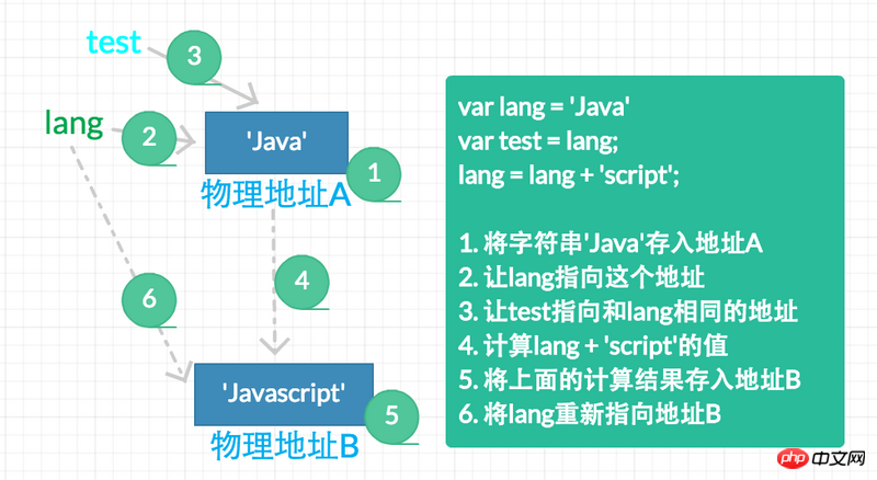 第二行中赋值号左边的lang不就是第一行中定义的lang吗,然后给它赋了新的值不就改变了这个字符串吗。可上面又写到ECMAScript中的字符串是不可变的,这怎么理解?