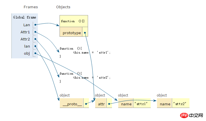 [1]obj 和 Lan.prototype.attr 同时指向 new Attr1() 创建的对象