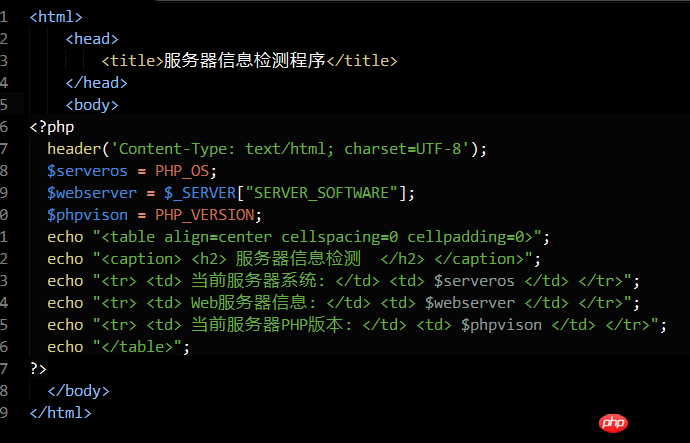 echo "<caption> <h2> 服务器信息检测 </h2> </caption>";
