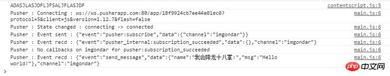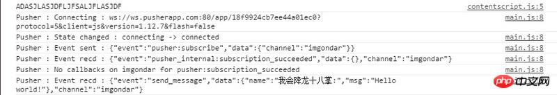 但是我用本地的 http://127.0.0.1/imgondarv8_test/ 发消息可以在部署好的那个什么接收到(毕竟使用的是同一个Pusher 应用),在浏览器控制台显示接受到的信息: