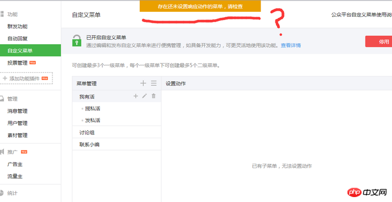 你的菜单或子菜单中存在有1个或多个未设置URL也未设置响应事件时,就会报此错误。 btw既然你不做开发干嘛要提到segmentfault?