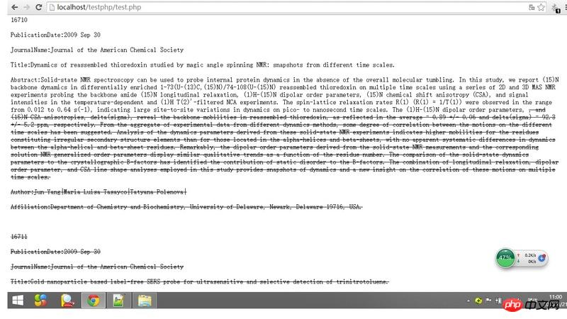 我下载一个Xml文件,大约有六万条数据,我用php读取,echo出来,在第16710条时出现文本删除线,这是为什么?