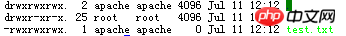 3、将/var/test文件夹的权限给足,用户和用户组设为apache