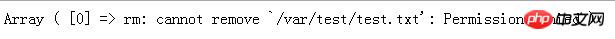 $a = exec("rm /var/test/test.txt 2>&1",$result,$status);