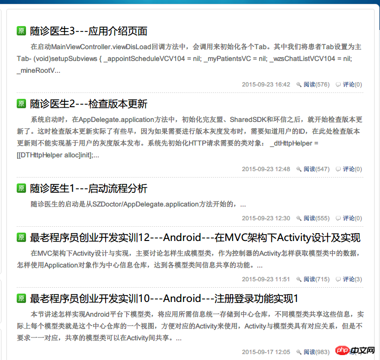 如何通过下面的JSON数据,动态生成博客的文章列表。(网页中的class都相同)。能用jquery吗?