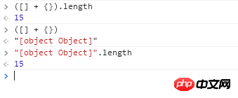 为什么 ([] + {}).length 是15?