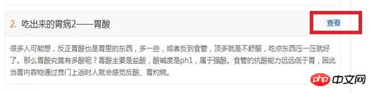 属于从后台调数据到前台显示,“胃酸”这些内容是图一提交给好后台的,相应的将链接地址也传到后台并在“查看”标签<a href=“链接地址”>查看</a>