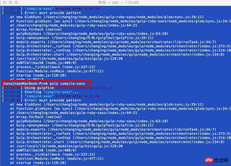 gulp.dest给的是一个目录路径而不是文件,如果不支持多对多映射,自然会抛出 glob 的异常。推荐使用 gulp-node-sass