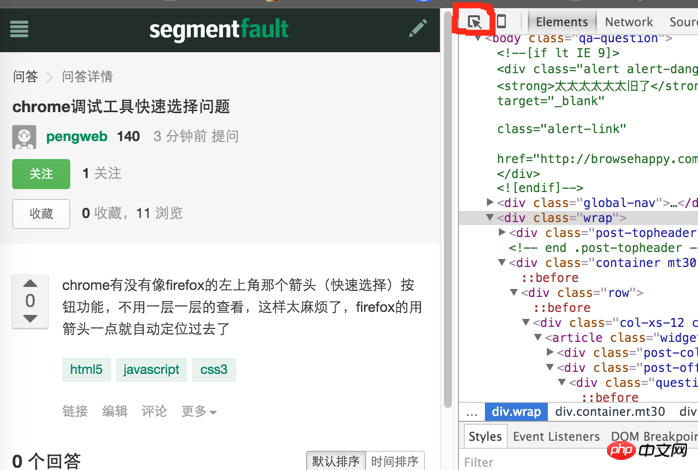 chrome有没有像firefox的左上角那个箭头(快速选择)按钮功能,不用一层一层的查看,这样太麻烦了,firefox的用箭头一点就自动定位过去了