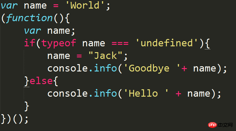 [2]的话,[1]就会输出undefined,因为在当前作用域中存在这么一句var name,变量声明会提到当前域的最前面,但是赋值语句还是在[2]的位置,所以现在的情况是:在