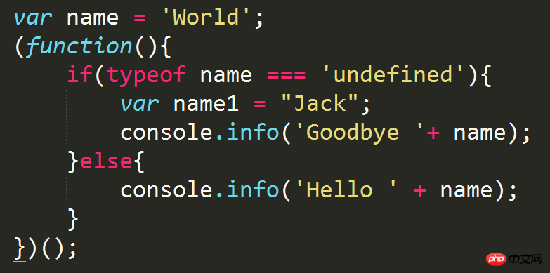 你第二个应该结果和第一个一样吧,并不是你想的那样访问不到外面的name变量了,而是你在这个自执行的函数中声明了name变量,name变量在执行上下文时会被提前声明,所以不可能访问到外面的,因为你的局部(函数内)就有这个name变量啊,js就不会再沿着作用域链向上去找了啊。