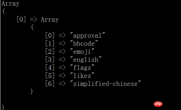 $array = json_decode('["approval","bbcode","emoji","english","flags","likes","simplified-chinese"]', true);