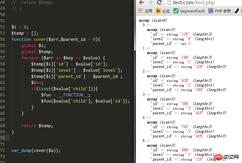 这里的每个parent_id是上层数组的id,第一层的parent_id是0