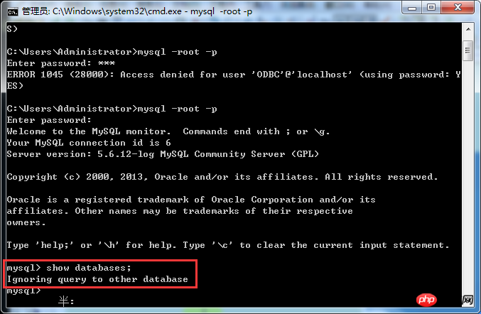 mysql -u root -p 点击 回车即可 你没有-u参数 应该是用匿名用户登录进来的,匿名用户的权限是最低的,连看数据库的权限都没有