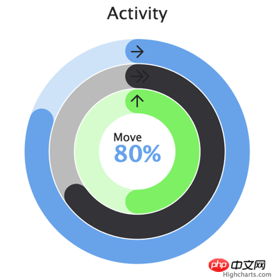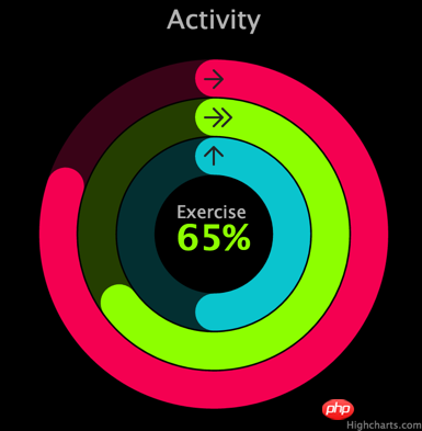 Highcharts 4.2.2 发布,增加了环形图圆角配置:linecap,基于这个配置官方给出了一个类似 Apple Watch 运动计的效果,效果如图: