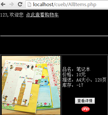 Test.php是商品详情页面,用户输入购买数量,单击ok实现数据库库存的减少