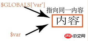 GLOBALS是个超全局变量,本身是个关联数组,所有的全局变量都是它下面的一个键值对