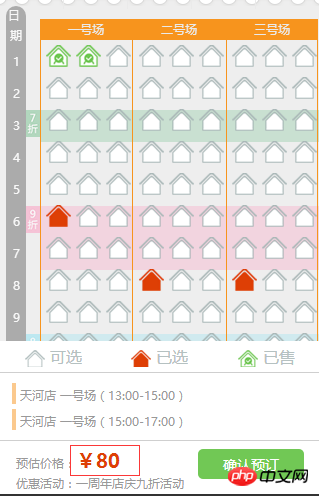 我做过类似的,我是将数值做成图标按钮的自定义属性,然后获取预估价格的数字,点击上面图标按钮的时候,判断是否是选中,若是就将自定义属性的值加到预估价格的值上,否则就从预估价格上减去自定义属性的值。这样不管你点多少个图标,都是将自定义属性的值加到预估价格的值上去。。。。这个知识不多,主要是字符串操作和事件点击操作。。。再加上ajax从后台获取可选,已选,已售的数据。。。大概就这样