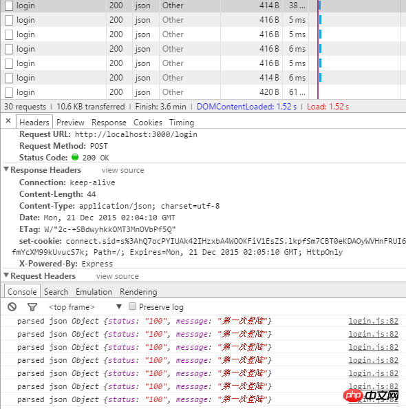 准备用express做一个登陆模块,前台是用react做的,我在submit按钮handle是这么写的