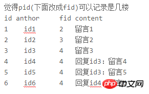 我的想法是建立一张留言表,其中有一个id字段和pid字段,如果是第一级留言pid字段就设置为0,否则就存它上一层id值。 取数据的时候递归得出每一条的深度,根据这个深度在输出的前面添加空格。